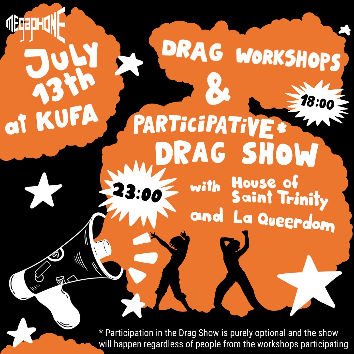 Participants of the workshops are additionally welcome to later join the drag performance on stage with the artists and show off their new skills.